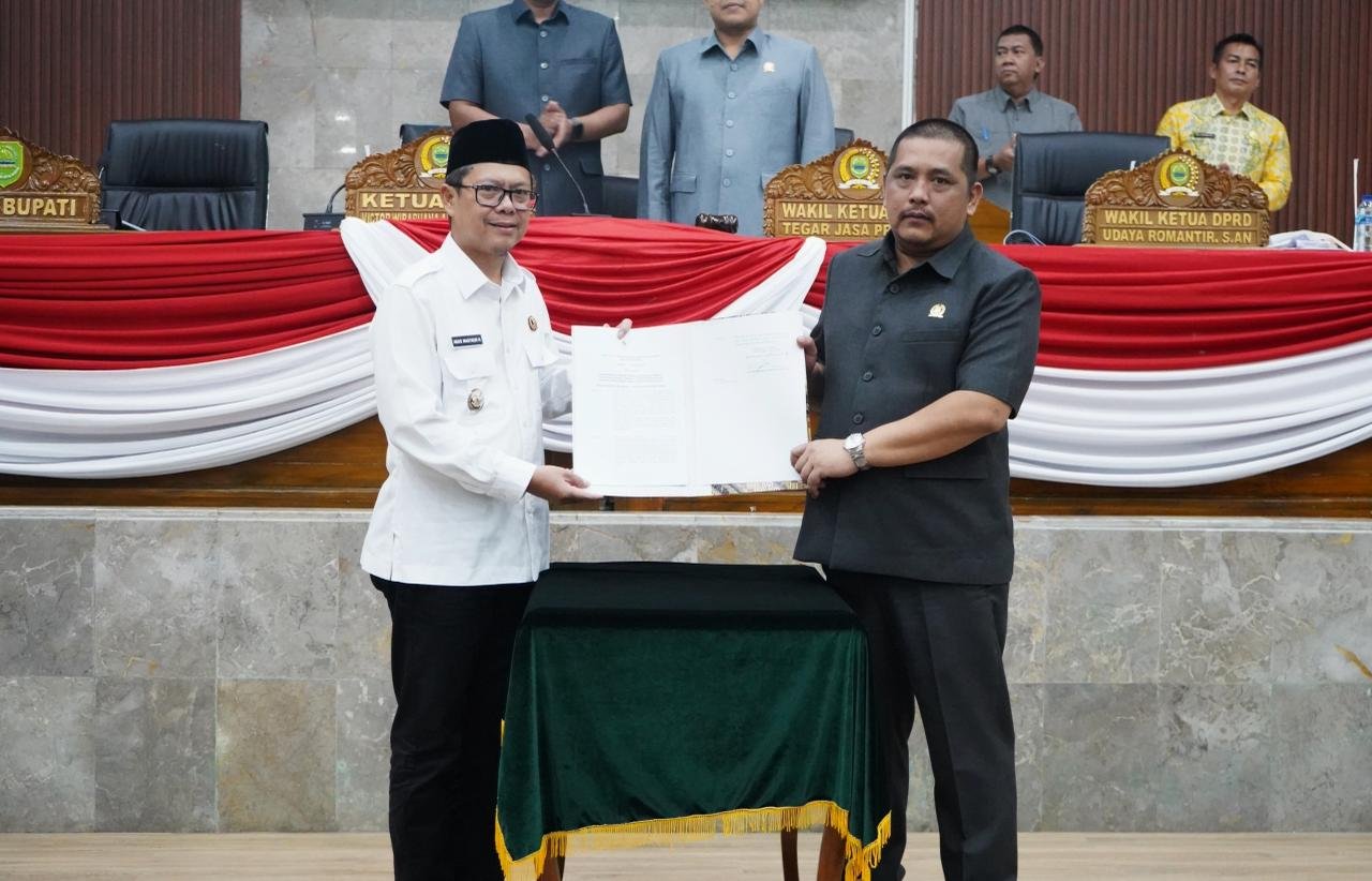 Dalam Rapat Paripurna di kantor DPRD Subang, Rabu (08/04/26), Wakil Bupati Subang Agus Masykur dan Ketua DPRD Victor Wirabuana, menandatangani Keputusan DPRD sebagai bentuk pemerintahan sepakat atas perubahan peraturan tersebut.